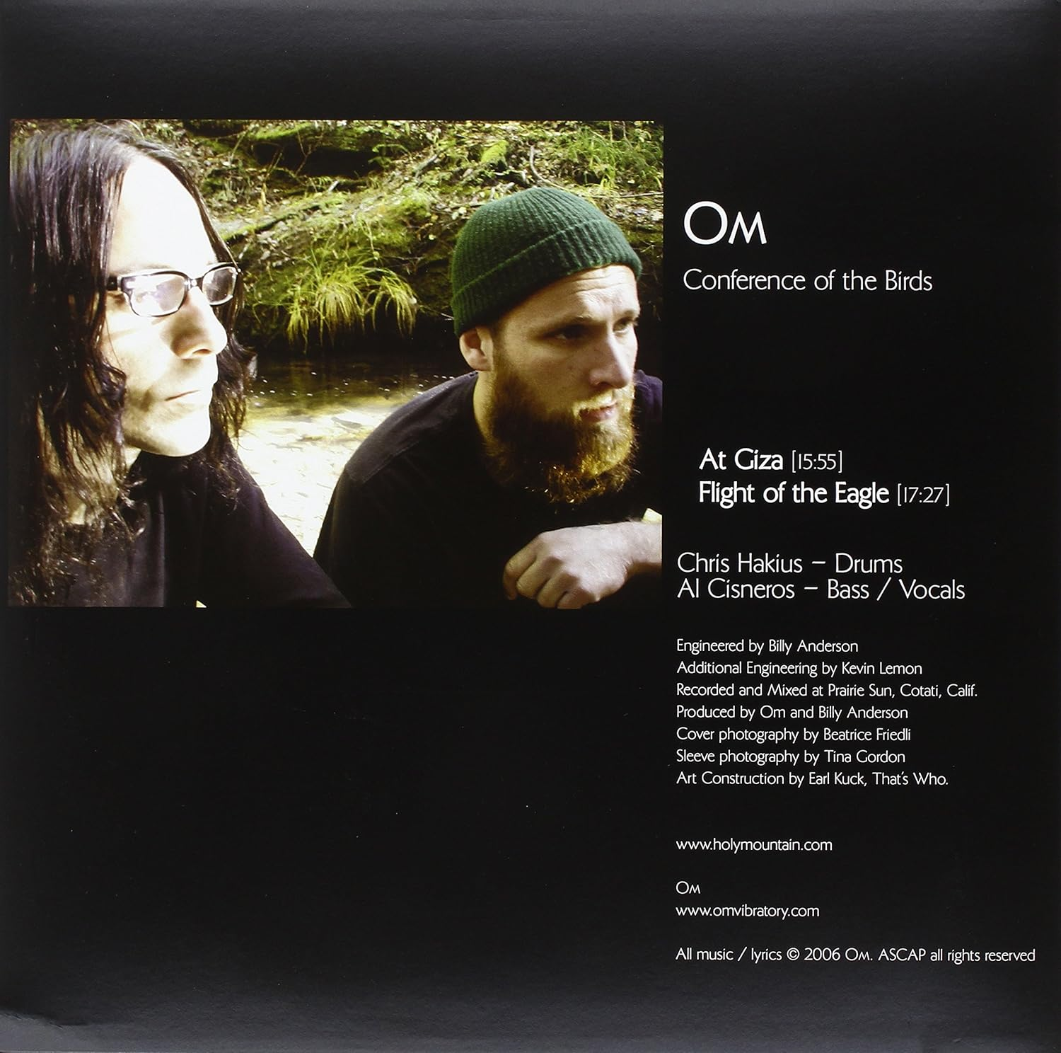 "Conference of the Birds" is an album by the band Om, known for its blend of metal, chant, drone, dub, and psychedelia. The album features two songs that showcase the band's use of cyclical rhythm and vocal intonation. It is often regarded as one of their best works, with tracks like "At Giza" being particularly praised for their steady drumbeats and deep bass lines. The album is a significant contribution to the stoner rock genre and is celebrated for its meditative qualities.