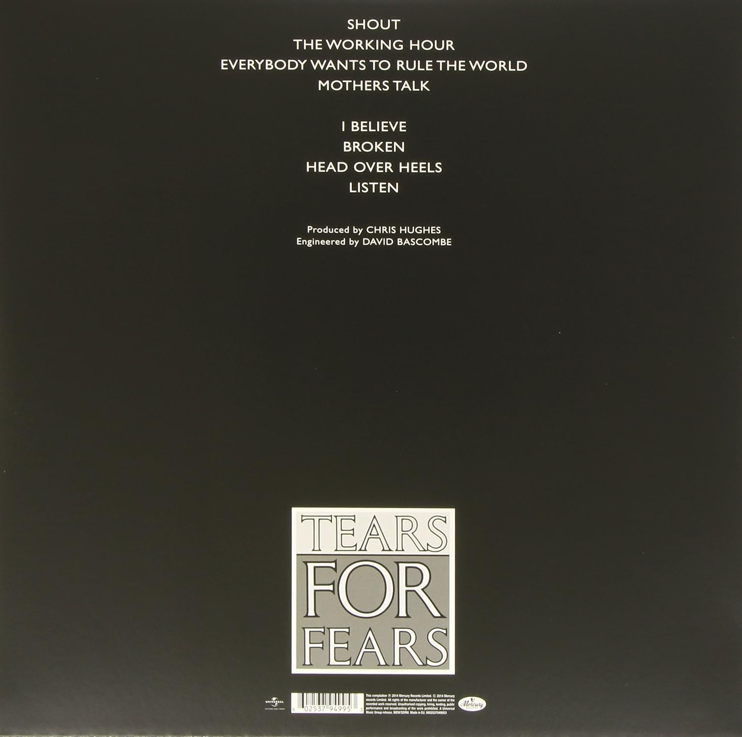 Songs from the Big Chair is the second studio album by the English pop rock band Tears for Fears, released on 25 February 1985 by Phonogram Records/Mercury Records. The follow-up to the band's successful debut album, The Hurting (1983), Songs from the Big Chair was a significant departure from that album's dark, introspective synth-pop, featuring a more mainstream, guitar-based pop rock sound, sophisticated production values and diverse stylistic influences, while Roland Orzabal and Ian Stanley's lyrics displayed socially and politically conscious themes.